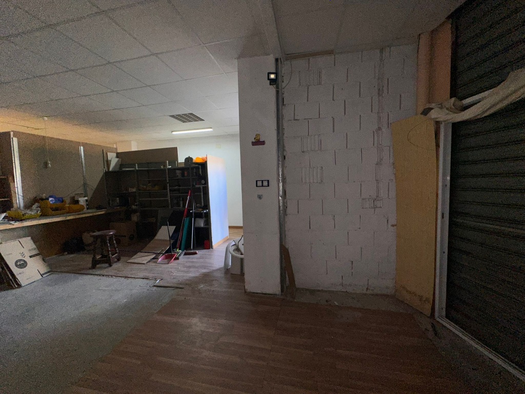 Local comercial diáfano de 94m2, ubicado en la Nucía. Cuenta con salida de humos, un baño con plato de ducha y una habitación utilizada como oficina. En las imágenes se puede observar una separación en el local en dos áreas, aunque se puede dejar totalmente diáfano sin inconveniente. Cuenta con una entrada a través de una puerta a pie y también tiene la puerta de garaje con persiana, perfecta para descargar mercancía, etc.